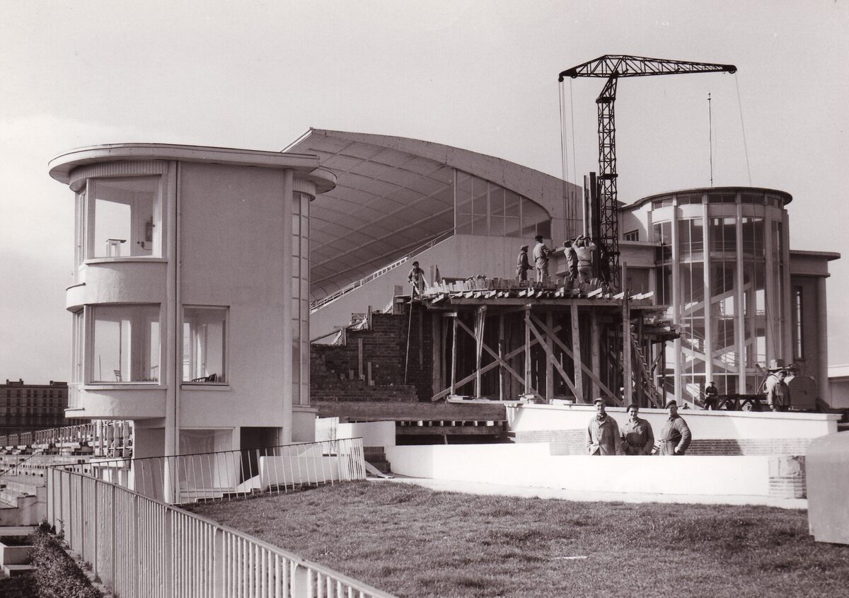 Formaat : 13 x 18 cm. - Bouw van de Koninklijke Loge op de renbaan. Voltooid in 1955.