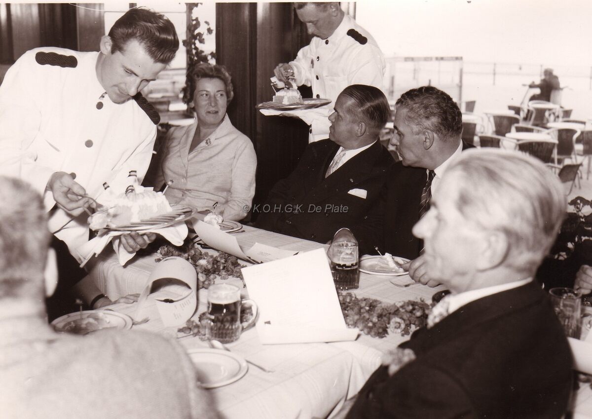 Burgemeester Adolf VAN GLABBEKE op een banket in restaurant "A la Renommée" op de Albert I-Promenade.