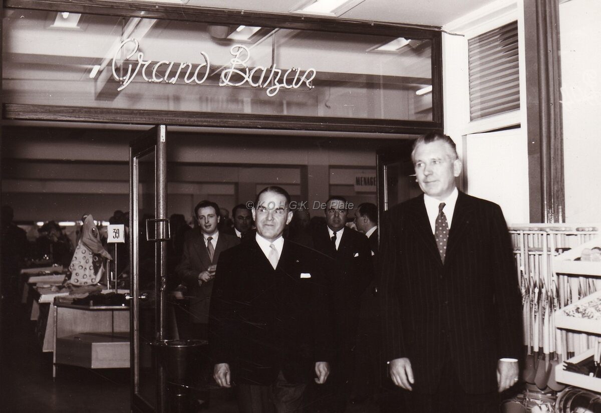 Burgemeester Adolf Van Glabbeke op de opening van de "Grand Bazar" in de Kapellestraat.
