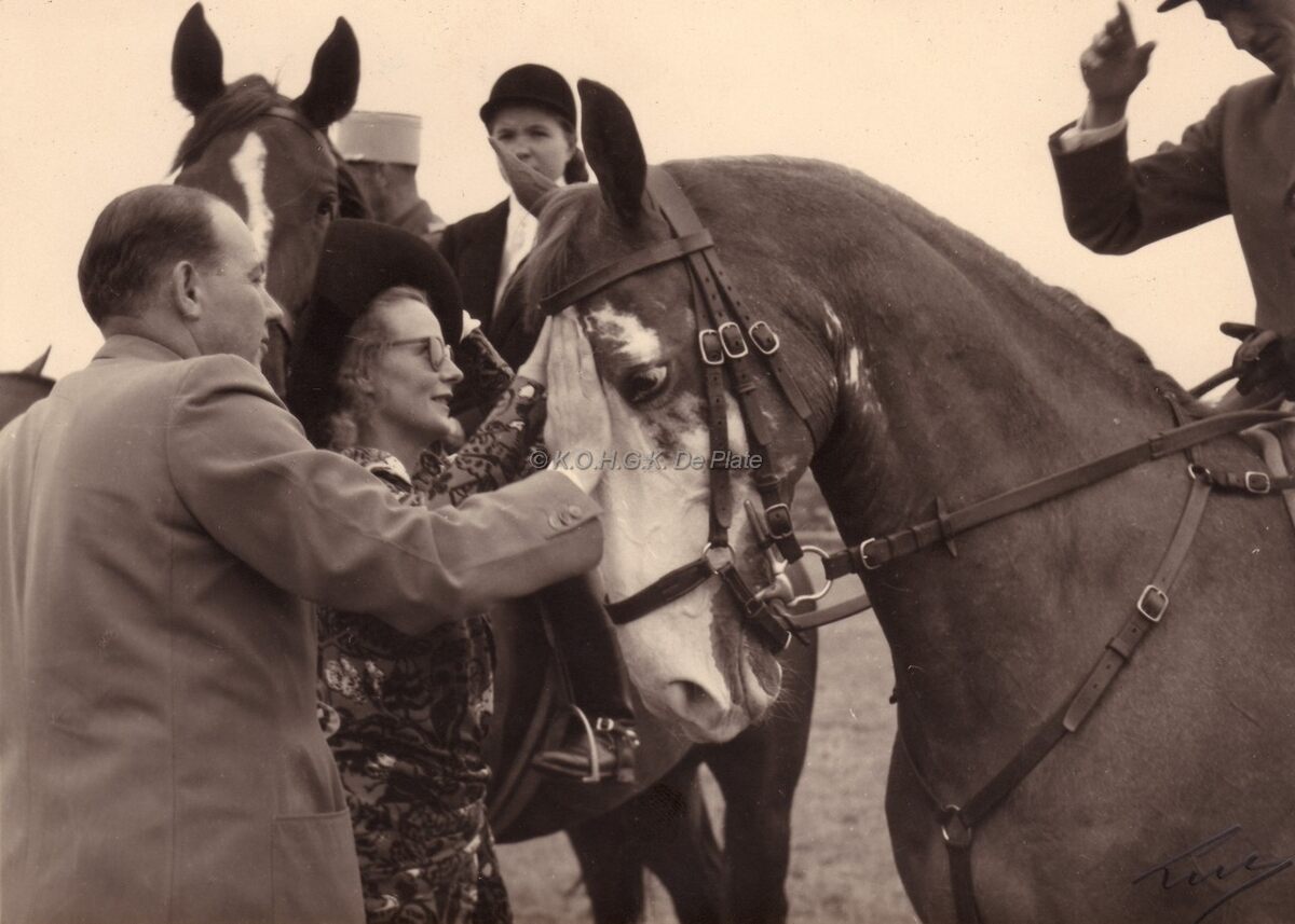 Carl VAN TIEGHEM DE TEN BERGHE en partner met een winner op een ruiterwedstrijd.