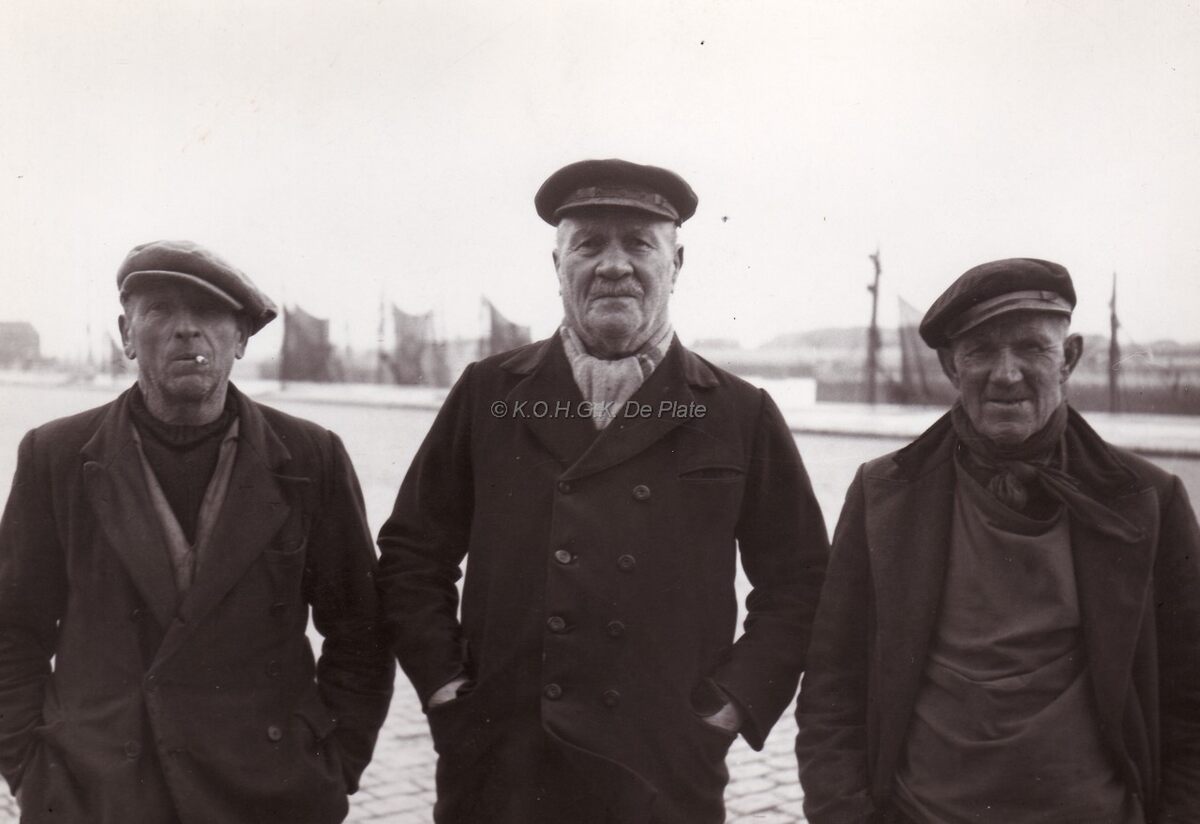 Een drietal oude vissers aan de visserskaai,centraal Pol (?) HAGERS.