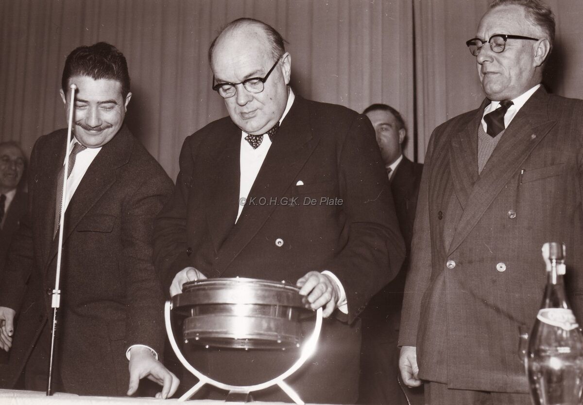 Paul Henri SPAAK op bezoek te Oostende in het Casino-Kursaal. Links van hem Roger DE KINDER, schepen en later gouverneur van Oost-Vlaanderen.