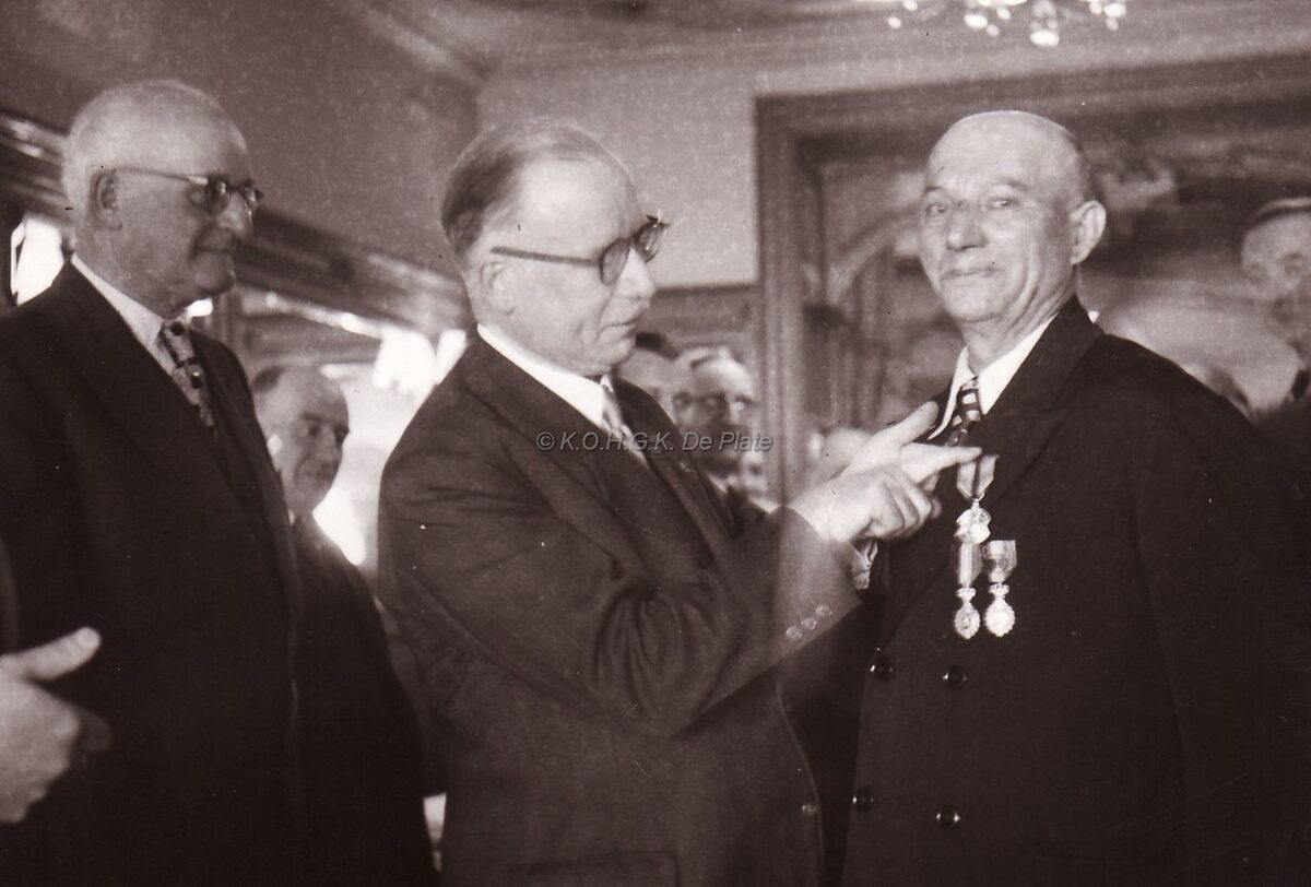 Burgemeester Hendrik SERRUYS decoreert, in "La Renommeé" een onbekende tijdens de viering van het jarig bestaan van (?).