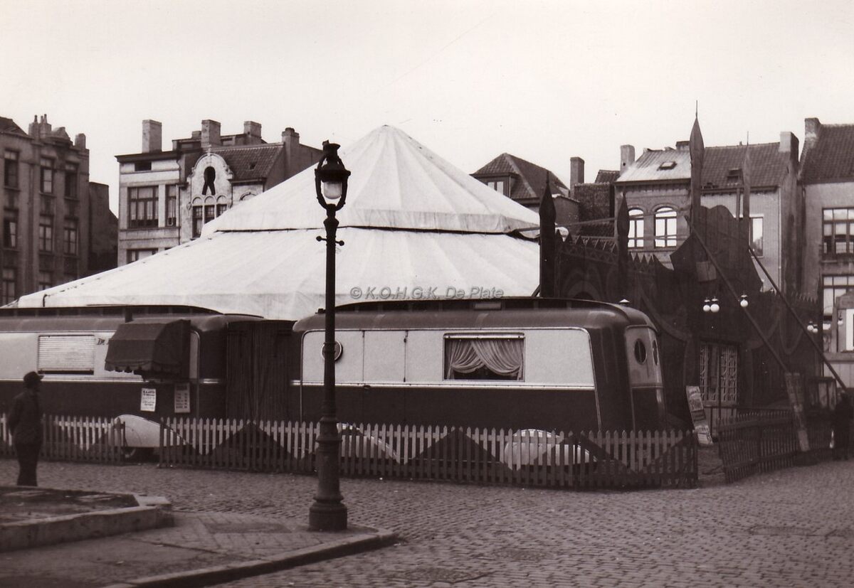 De circustent van circus Semay met woonwagens op het Mijnplein.