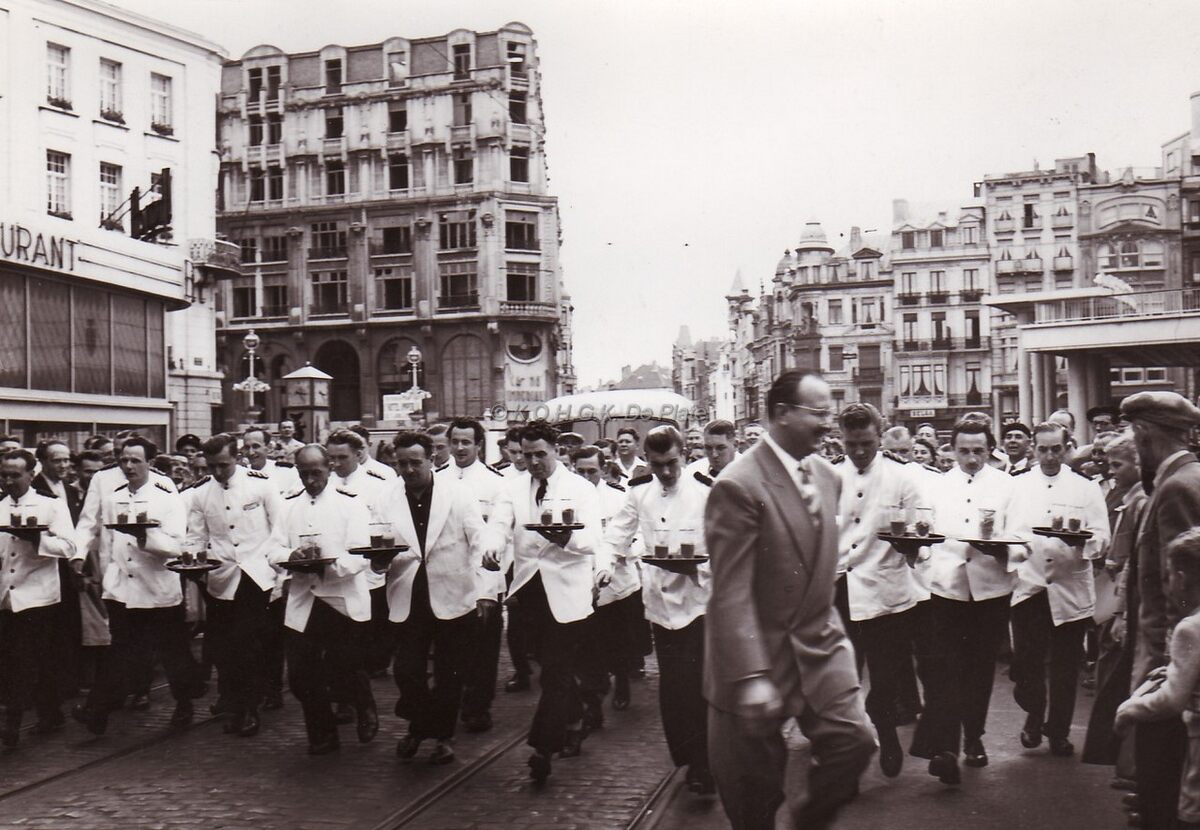 Na het geven van het startschot voor de wedstrijd voor kelners in de Van Iseghemlaan aan de Kursaal, maakt Roger De Ramée, directeur van de Kursaal, zich uit de voeten.