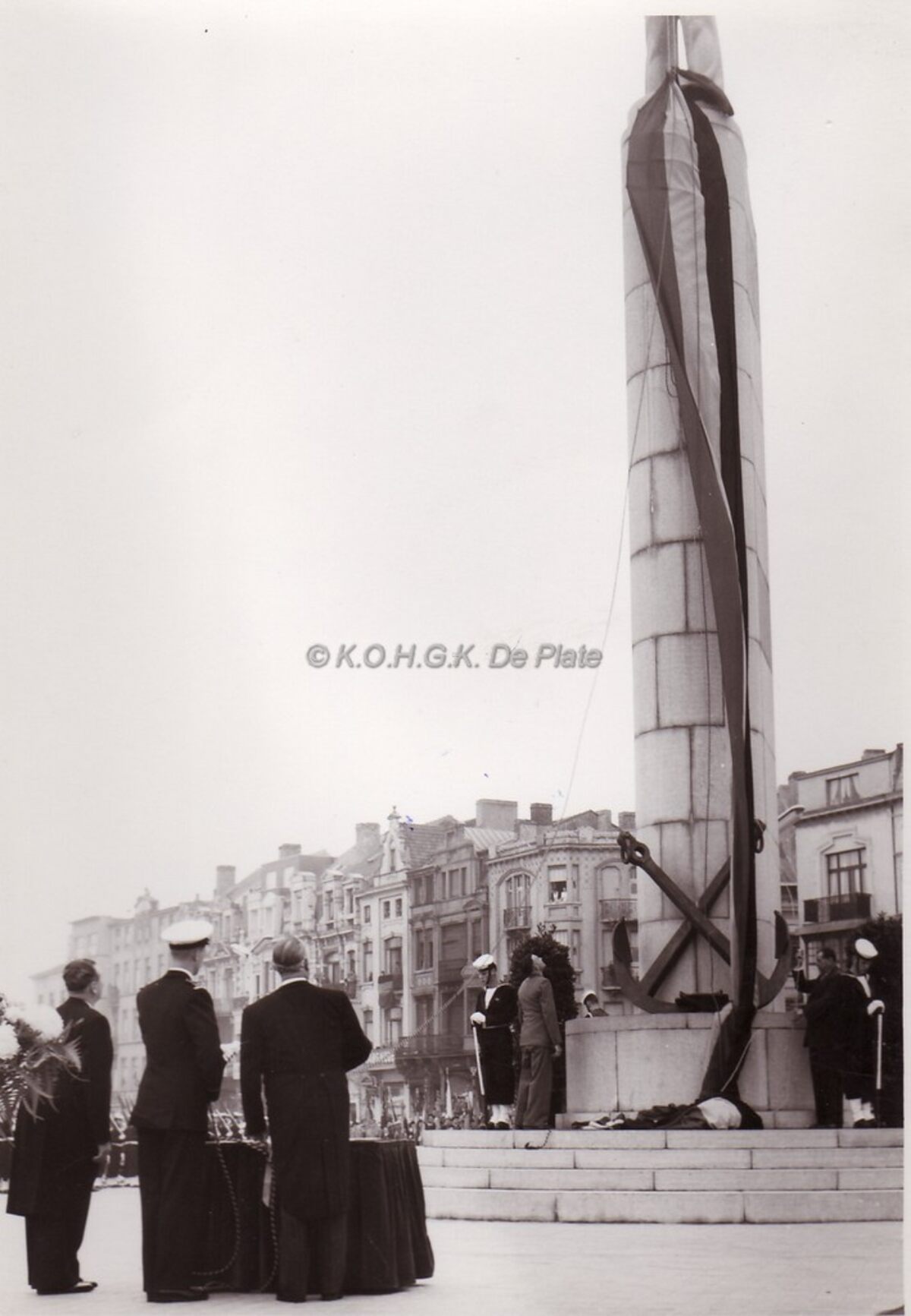 Onthulling monument der zeelieden op het Zeeheldenplein.Links op de achtergrond de Visserskaai.