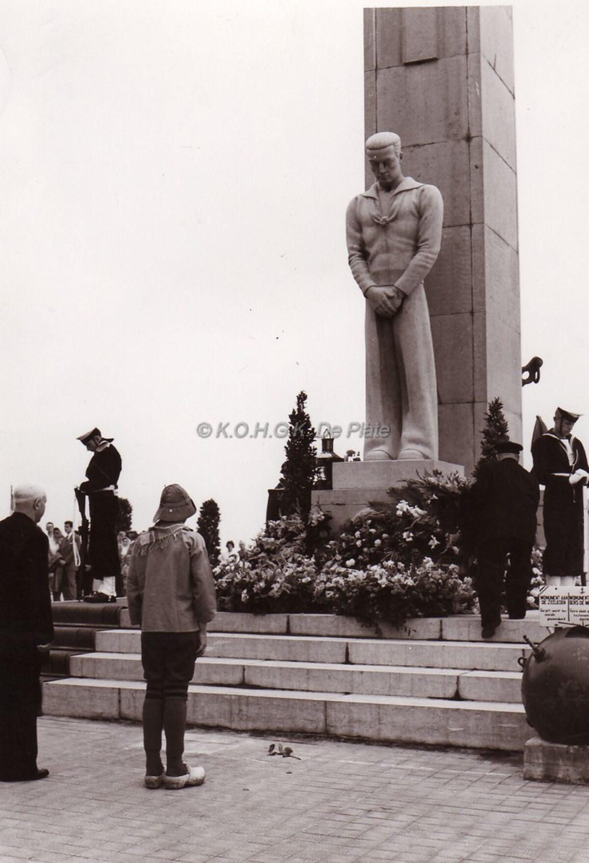 Bloemen hulde tijdens de jaarlijkse herdenking van de op zee omgekomen mensen aan het monument der zeelieden op het Zeeheldenplein.