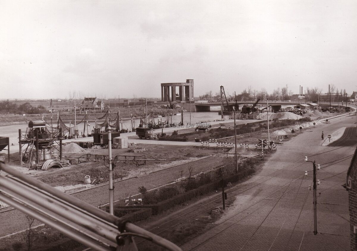 Visserskaai te Nieuwpoort nabij de Vismijn.Op de achtergrond het monument Albert I.