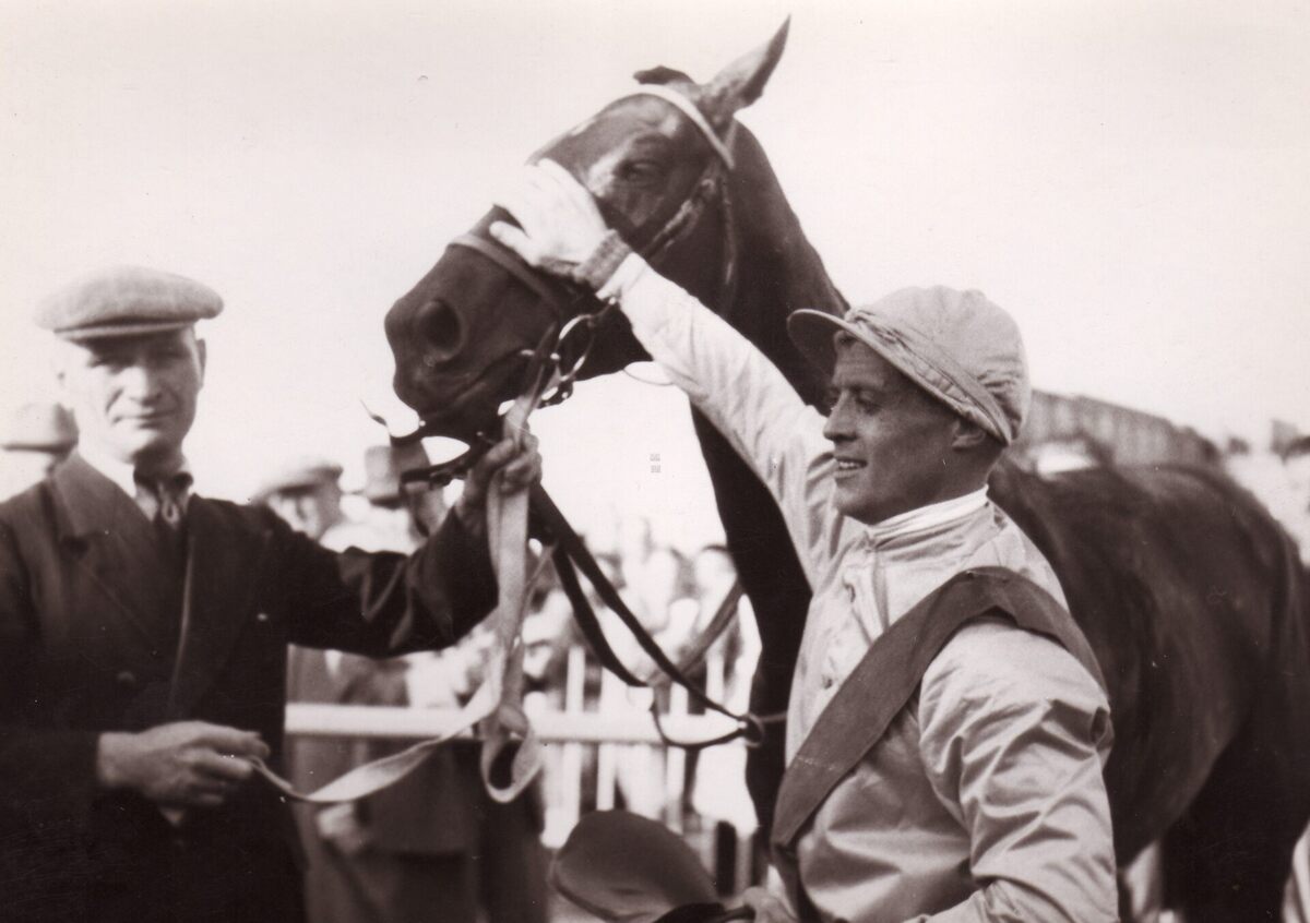 Formaat : 13 x 18 cm. - Jockey Palmer met Fast Fox in de paddock