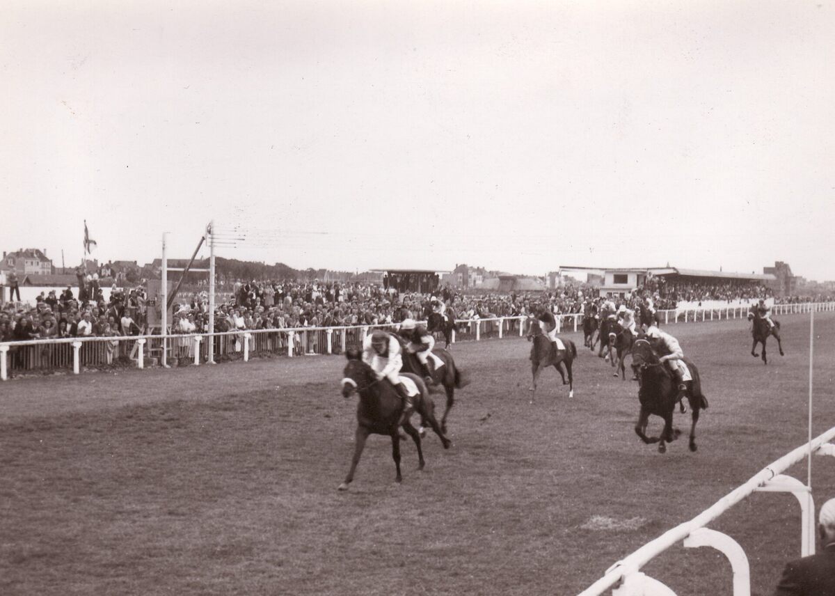 Formaat : 13 x 18 cm. - Aankomst van een wedstrijd op de renbaan.