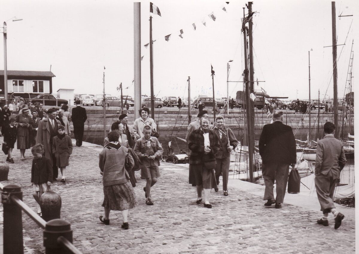 Formaat : 13 x 18 cm. - Wandelaars langs het Montgomerydok, op de achtergrond de Montgomerykaai.