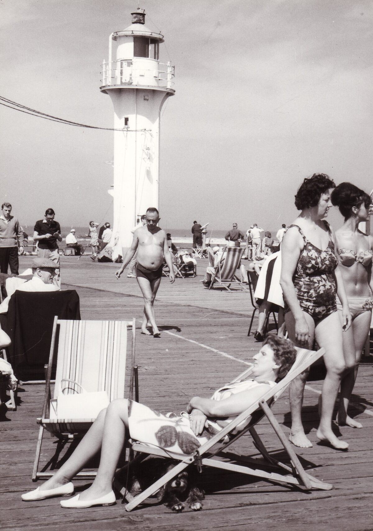 Formaat : 18 x 13 cm. - Zonnekloppers op het einde van het Weststaketsel. De elektrische mistbel met groen licht en om de 4 seconden