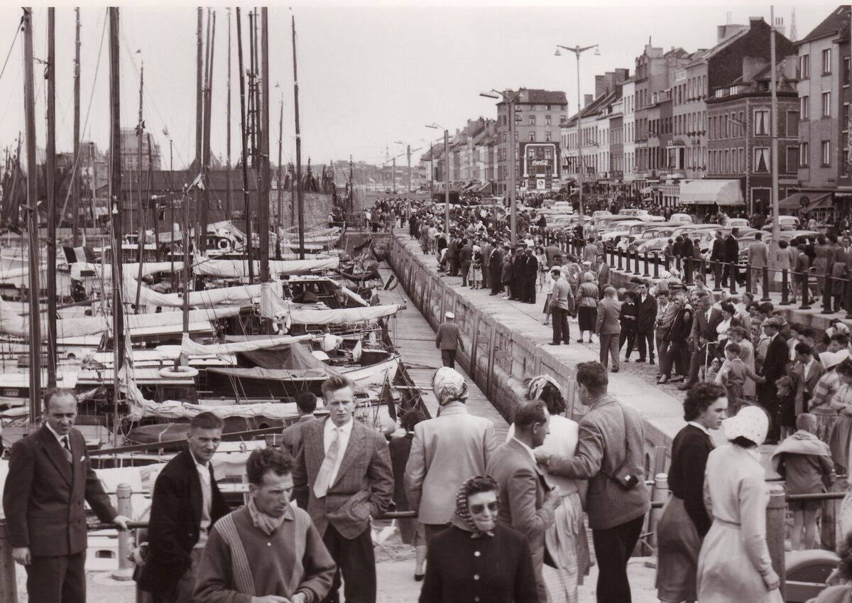 Formaat : 13 x 18 cm. - Een massa volk langs de Visserskaai. Zij komen de jachtjes bekijken die in het Montgomerydok liggen.