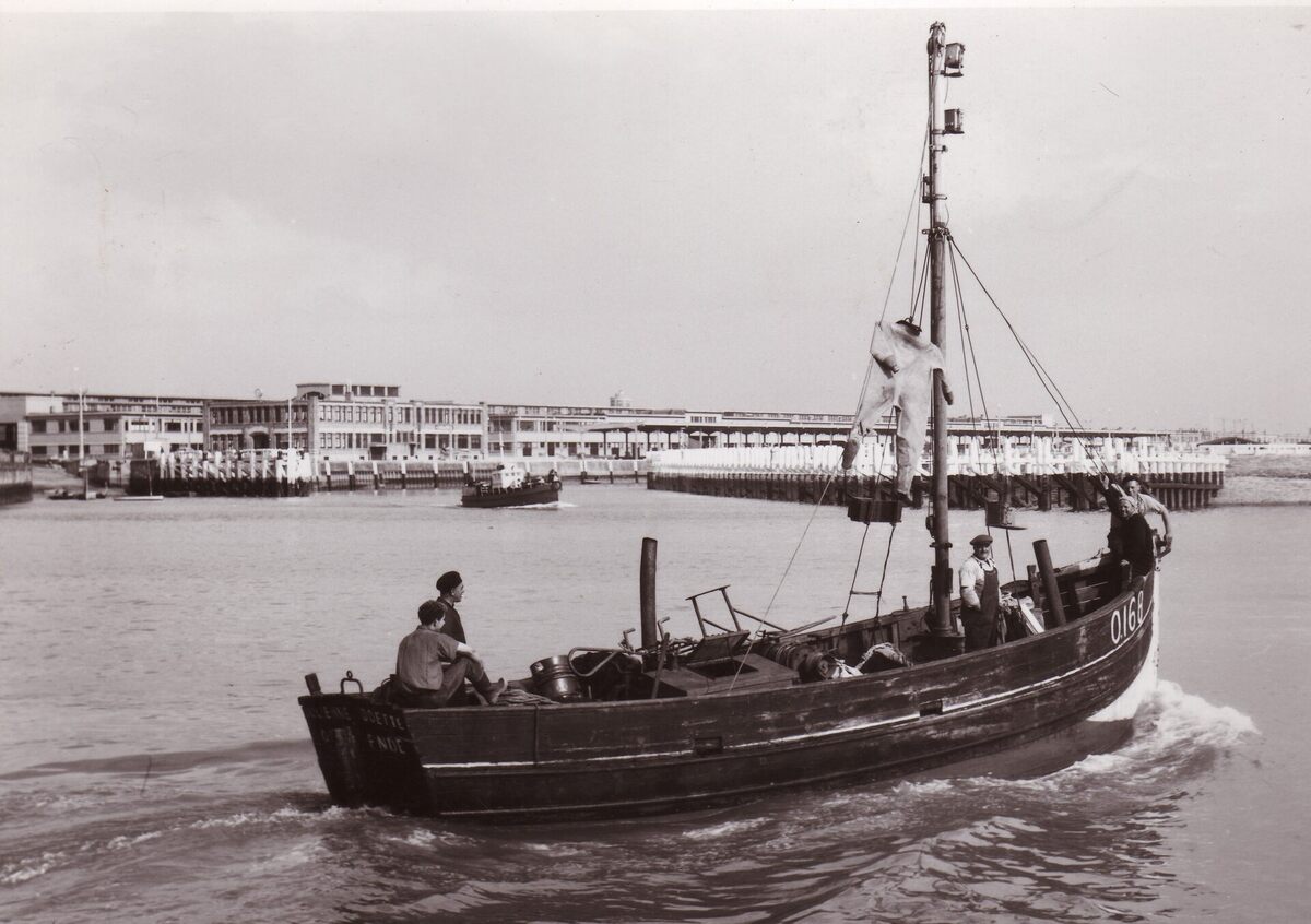 Formaat : 13 x 18 cm. - Op de achtergrond de vismijn