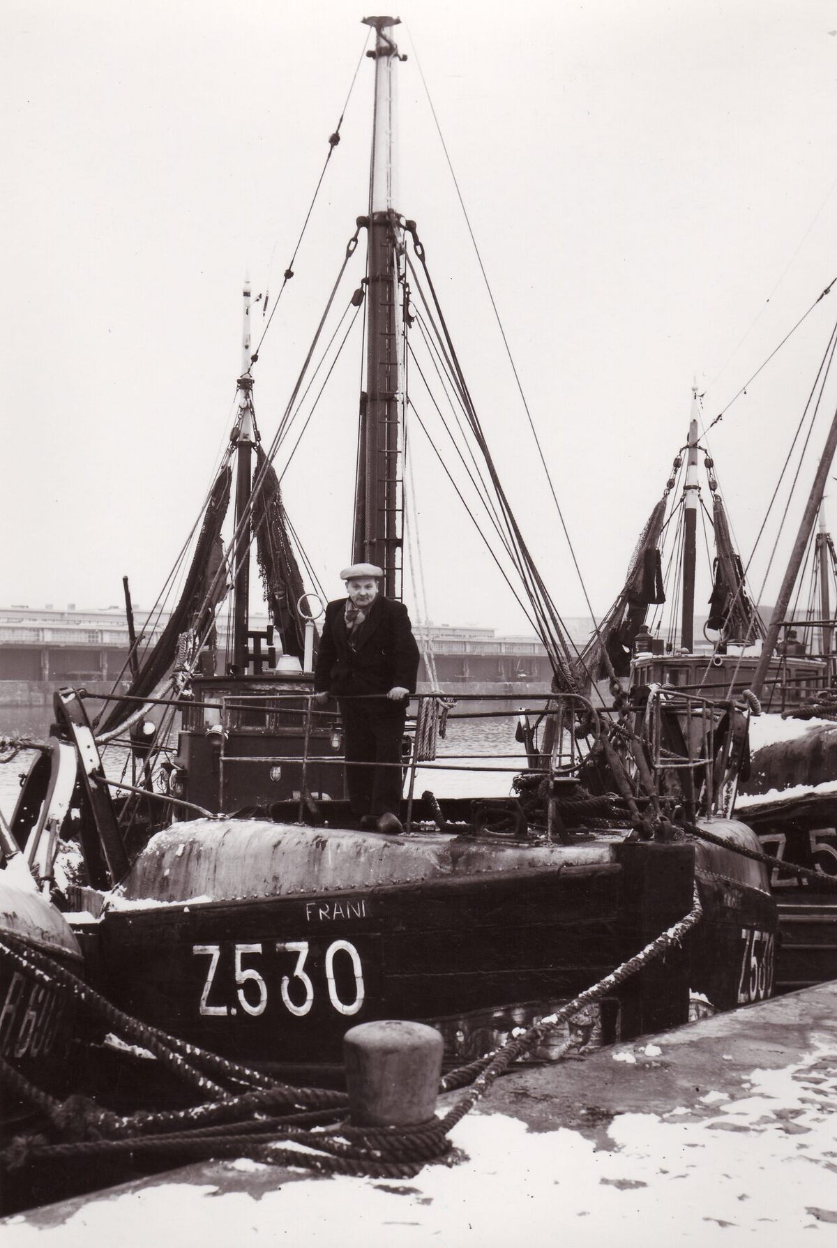 Formaat : 18 x 13 cm. - Het Zeebrugse vissersvaartuig Z.530 Frank in het Visserijdok. In de achtergrond de Vismijn.