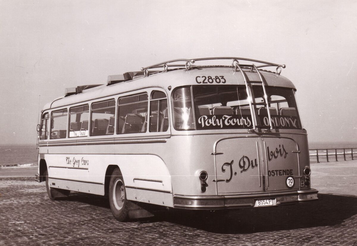 Formaat : 13 x 18 cm. - Een bus van de firma The Grey Cars op de Zeedijk. J. Dubois (Wellingtonstraat 48), Oostende. Poly Tours London