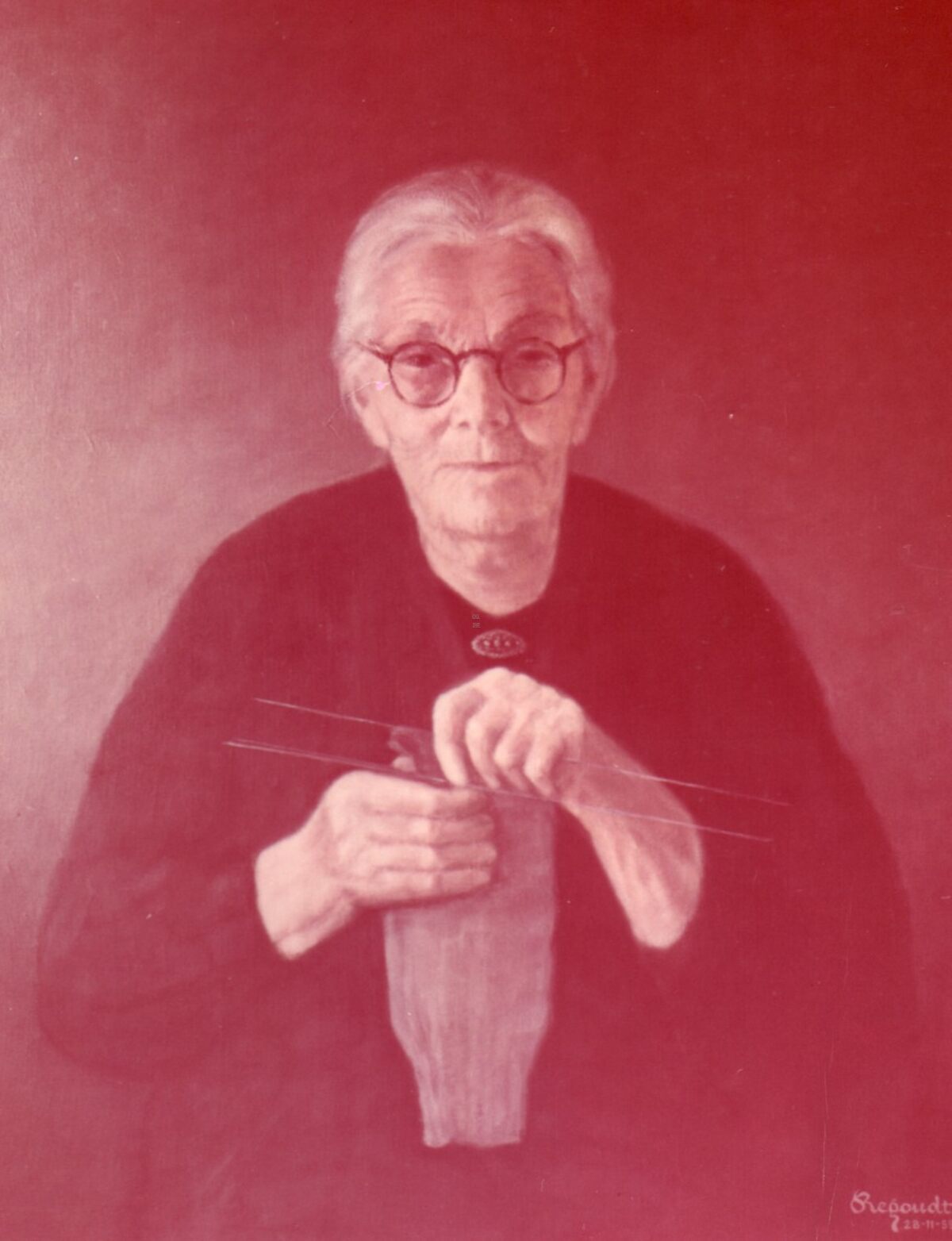 Een kleurfoto van een portret door kunstschilder Frans REGOUDT (zijn moeder ?).