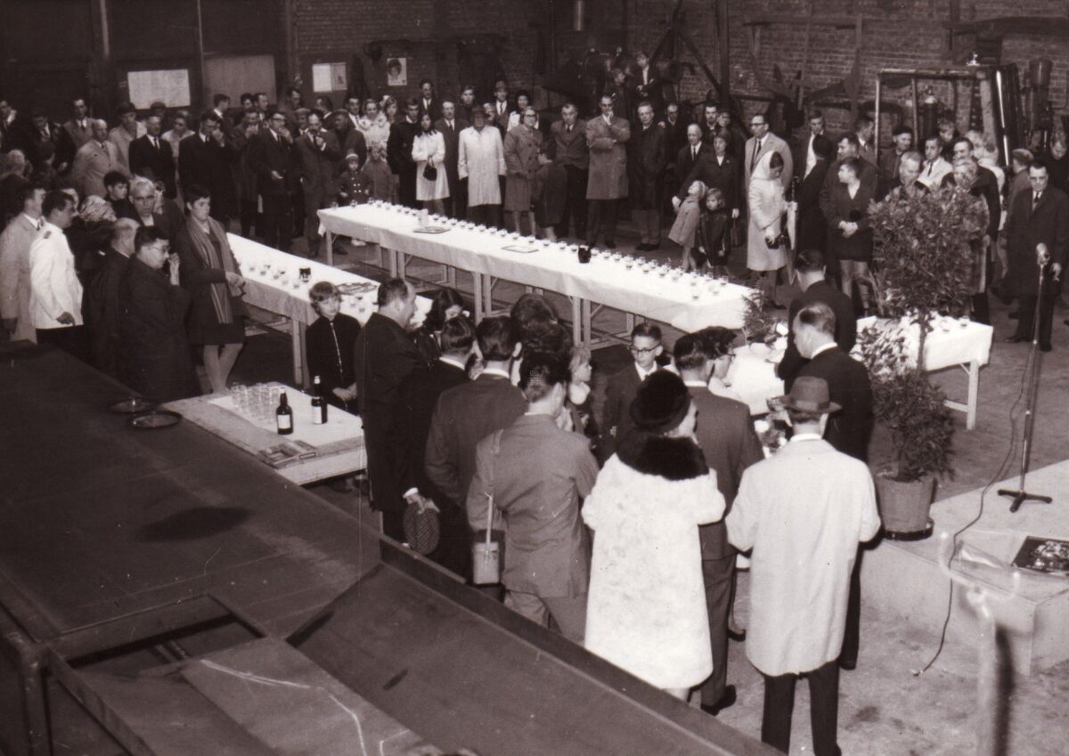 De obligate receptie na de tewaterlating van een schip.