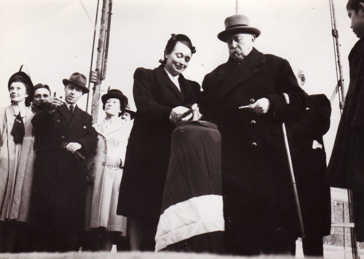 Scheepswerf Beliard-Crighton & C°, de heer en mevrouw BELIARD bij de doop van een te water te laten boot.