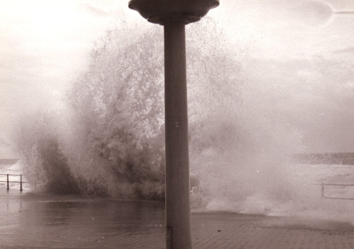 Stormweer,overslaand water aan de Albert I Promenade.