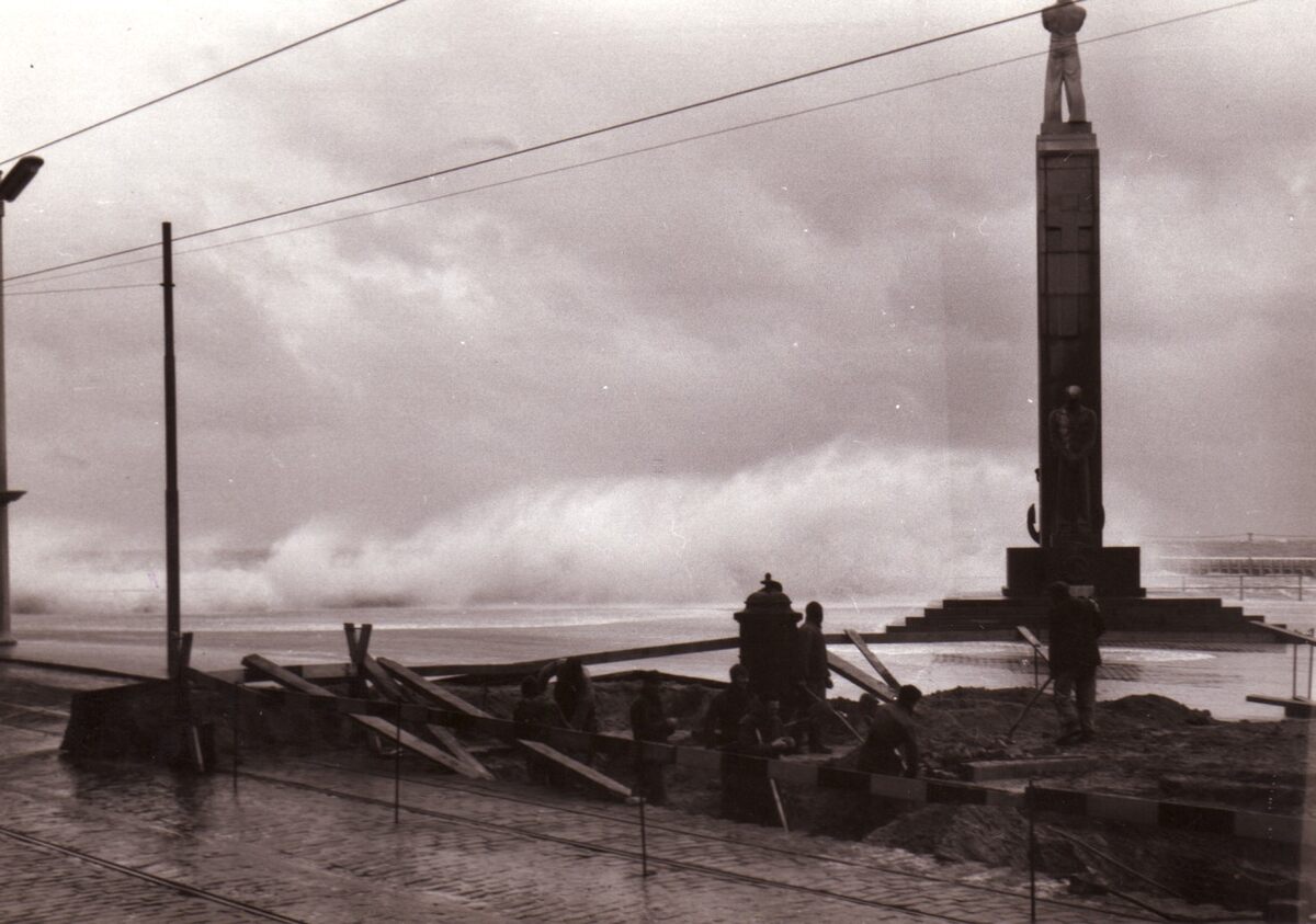 Overslaand water bij stormweer aan het Zeeheldenplein (zie ook 2014/4144).