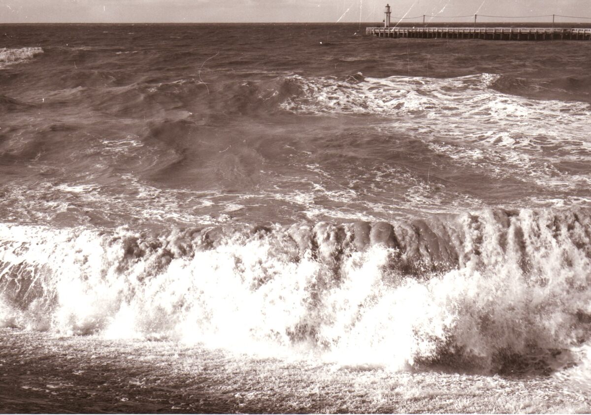 Een stormachtige zee breekt tegen de Zeedijk.