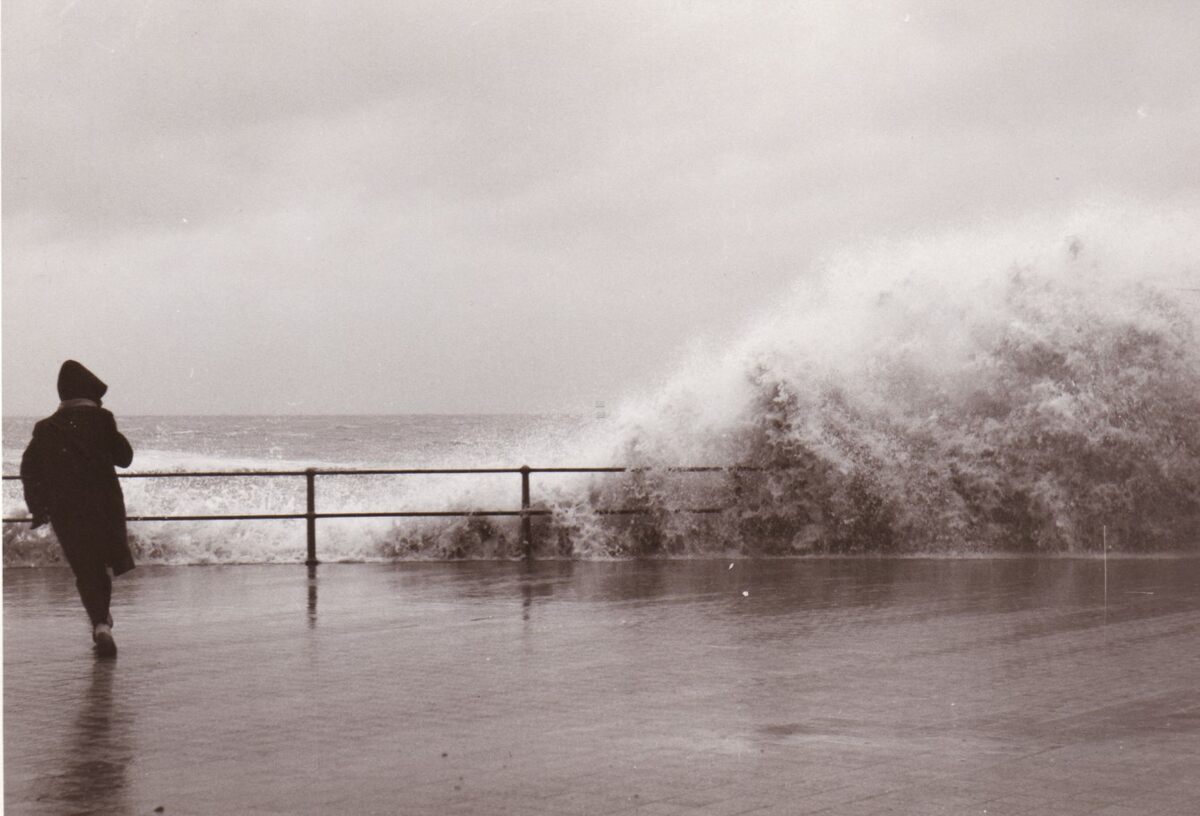Overslaande golven bij stormweer aan de Albert I Promenade.