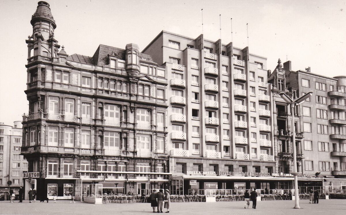 Formaat : 9 x 14 cm. - Hotel en restaurant met terras op de Albert I-Promenade