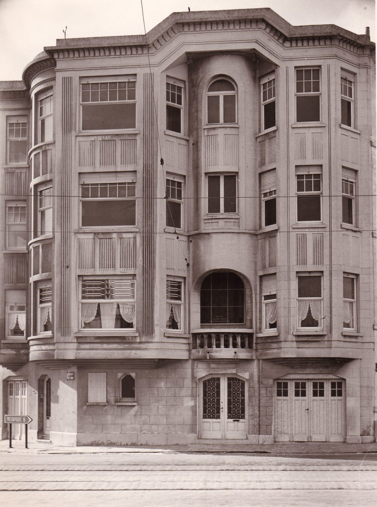Formaat : 18 x 13 cm. - Gebouw op de hoek van de Troonstraat en de (verdwenen) Bergenstraat (Rue de Mons).