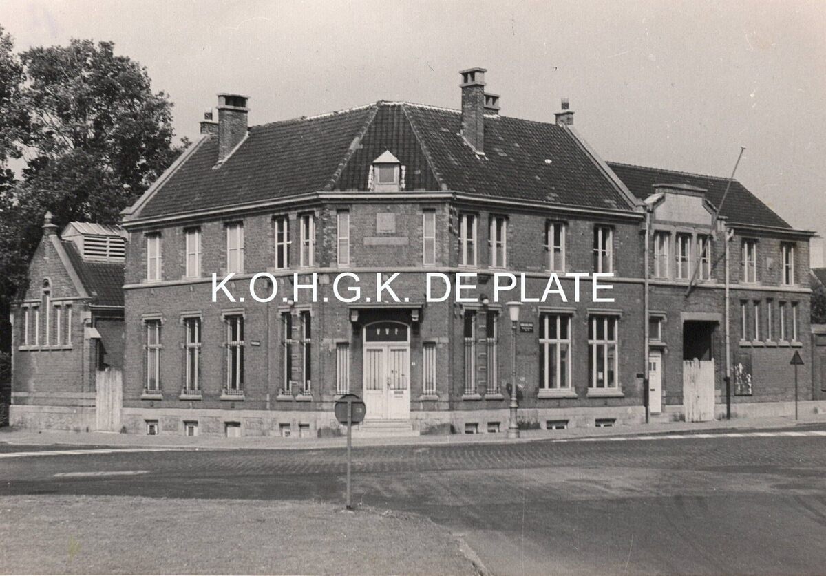 Formaat : 10 x 14 cm. - Foto uit de periode 1952-1975 - Dienstgebouw gelegen op de hoek van de Leffingestraat (links) en de Edith Cavellstraat (rechts). In dit gebouw waren ondergebracht : Het politiebureau "De Morre" van 1900 tot 1955, het dispensarium ter bestrijding van de tering en het mortuarium, in de volksmond "De Morre" genoemd. In 1968 werd het leegstaand gebouw ter beschikking gesteld van de "Vlaamse Vereniging voor Familiekunde (VVF)" die er haar lokaal had tot 1974.