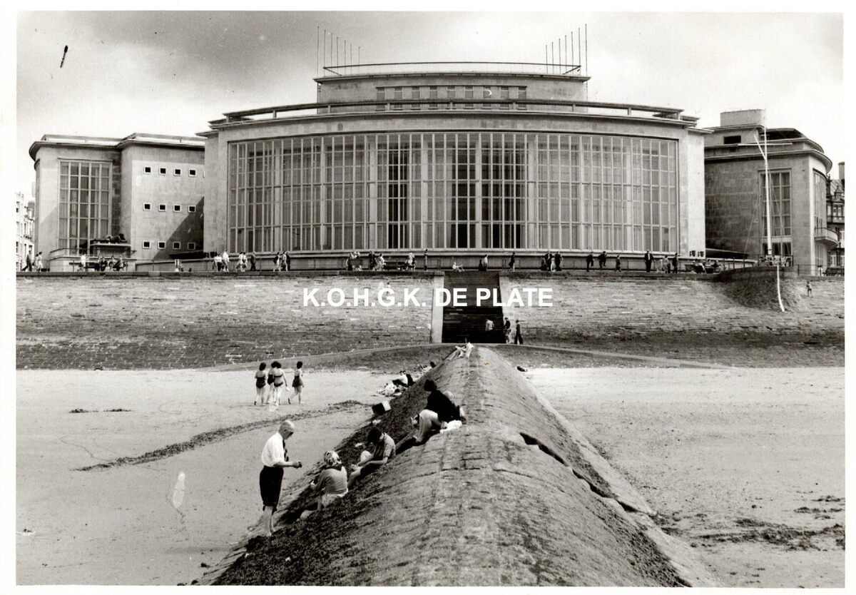 Formaat : 13 x 18 cm. - De Noordgevel van het Kursaal gelegen langs de Albert I-promenade. Let op, links, het beeldhouwwerk "De Zee", in de volksmond "Dikke Mathille" van de beeldhouwer Georges Grard ligt nog op zijn oorspronkelijke plaats !