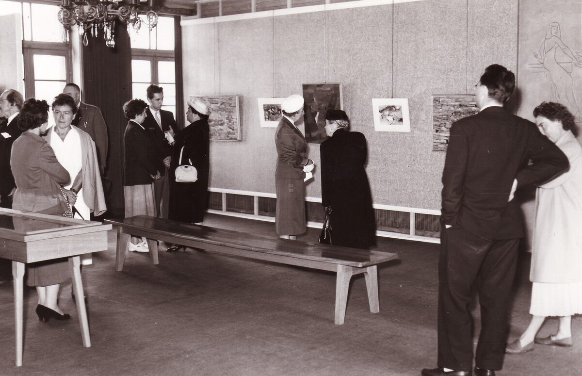 Tentoonstelling moderne kunst in de Koninklijke Schouwburg.