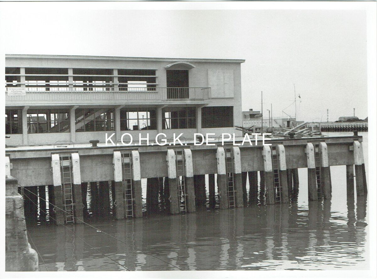Foto : 13 x 18 cm. - Bouw van de Garnaalmijn in 1957-1958, naar de plannen van A. De Vos. Vanaf 1977, het Noordzeeaquarium.