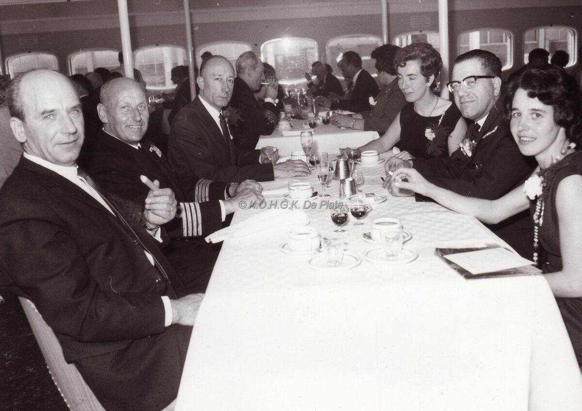 Personeelsfeest "PEETERS" aan boord van de ferry Leopold III.Midden rechts de heer THOMAS.
