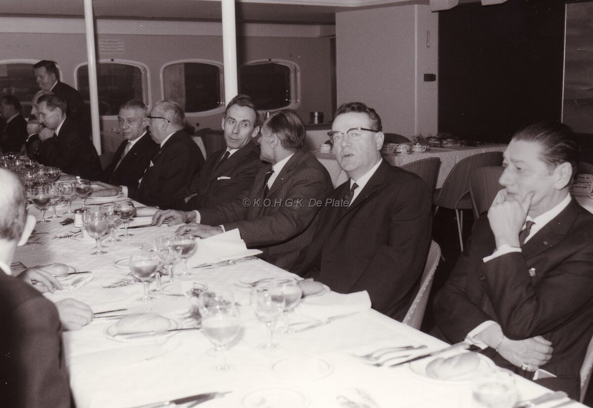 Restaurant van de ferry Roi Leopold III tijdens een personeelfeest voor het personeel "PEETERS".