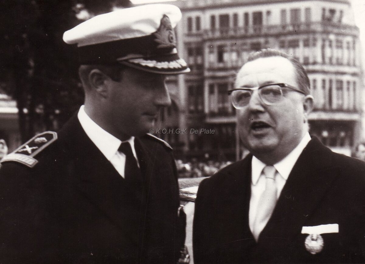 Waarnemend burgemeester John LAUWEREINS in gesprek met prins Albert Op de achtergrond hoek Vindictivelaan Aartshertoginnestraat.