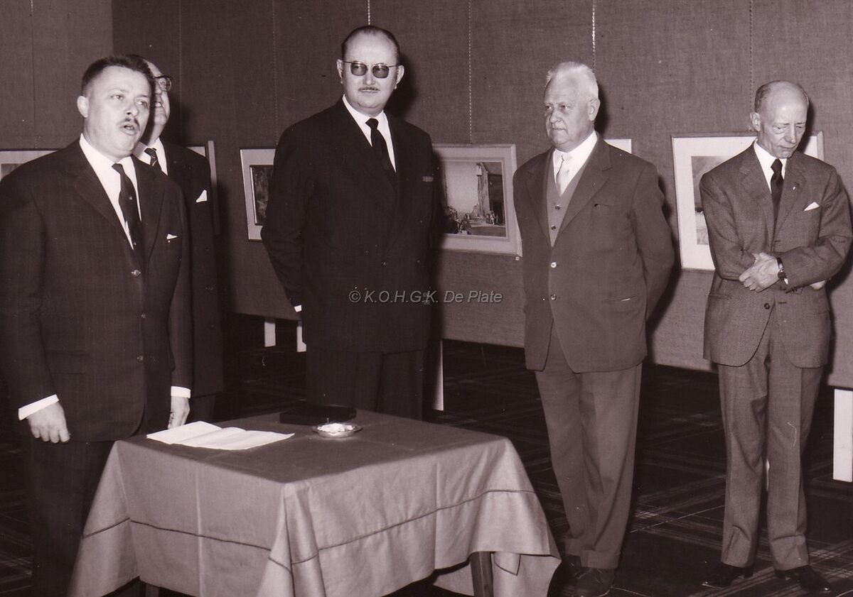 Opening van een tentoonstelling in het Kursaal.achter de spreker halfverborgen waarnemend burgemeester John LAUWEREINs,dan Roger DE RAMEE,concessionnaris Kursaal en uiterst links schepen Marie-Jozef PORTA.