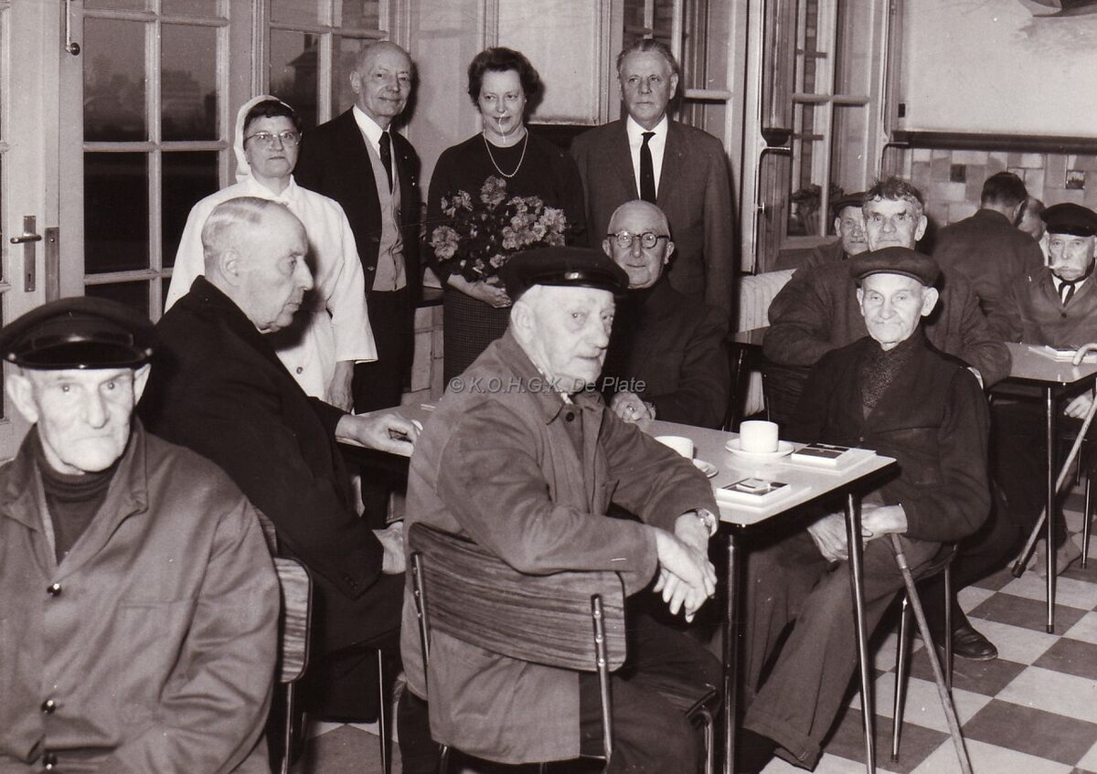 Schepen Marie-Jozef PORTA op bezoek bij de oude zeebonken in het GODTSCHALCK Zeemanshuis. In de bloemen de directrice mevrouw Marie-Louise VANDENBERGHE.