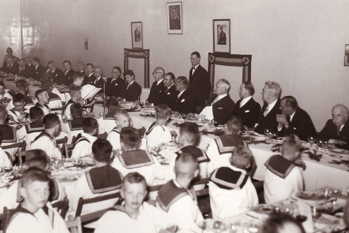 Prins Alexander (centraal), luistert naar een speech van een leerling van de Ibisschool waar hij op bezoek is. Burgemeester Adolf Van Glabbeke, derde rechts van de prins.