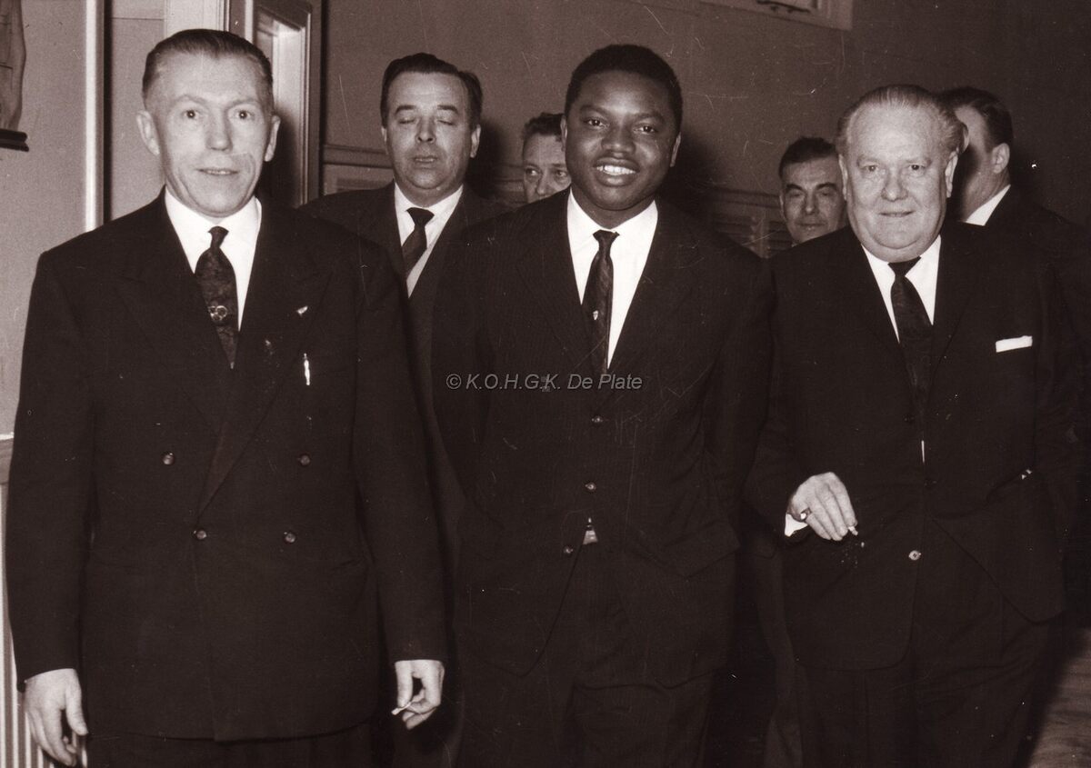 Een donkere medemens op bezoek te Oostende,waarschijnlijk ee"n politiek figuur van de pas onafhankelijke Congolese Republiek.