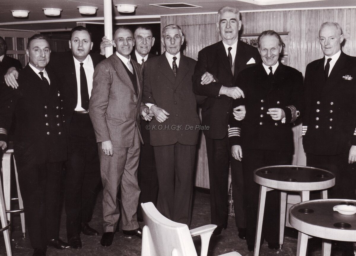 Verschillende commandanten tijdens een feest aan boord van de "Roi Léopold III".
