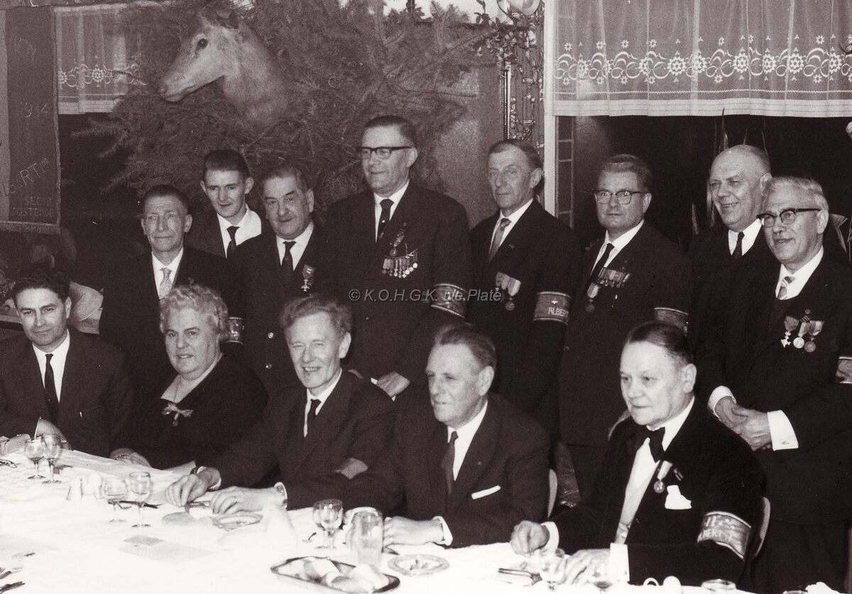 Een banket van de veteranen Albert I (Albertisten) waarop blijkbaar ook eretekens werden uitgereikt. Uiterst links vooraan de burgemeester van Bredene, Albert CLAEYS.