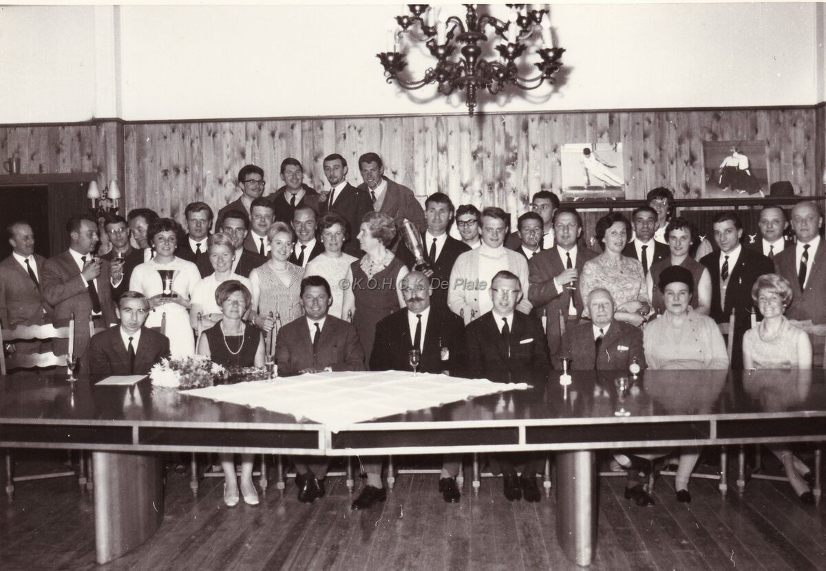 Bijeenkomst van de loodsensportvereniging. Centraal zittend achter de tafel, voorzitter Alfons Dekeyser,loodssenschippe en,links naast hem Marcel Friederichs, gemeenteraadslid en hoteluitbater met zijn echtgenote. Helemaal achteraan staande, eerste van rechts Raymond Brackx, bediende kadaster.