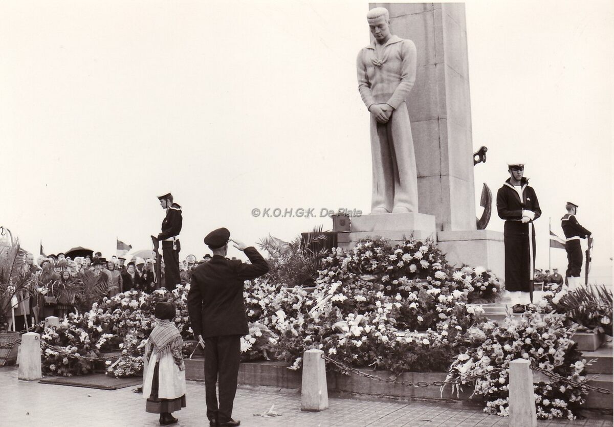 Bloemenhulde aan het monument der zeelieden op het Zeeheldenplein.