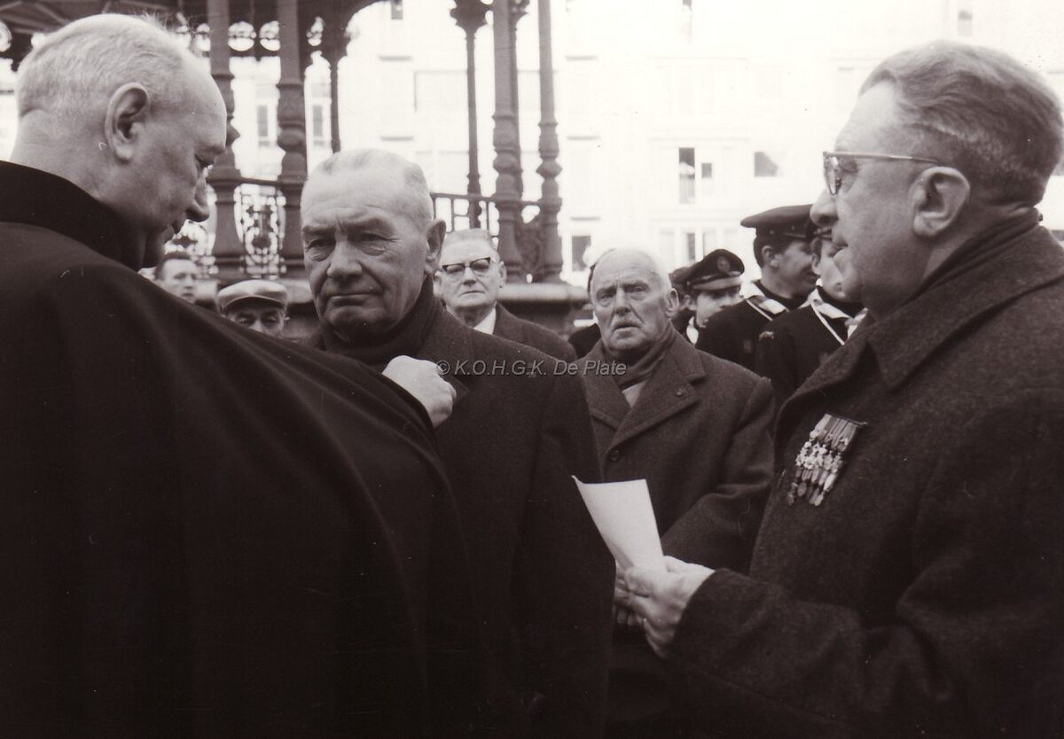 Schepen Kamiel DEHOUCK decoreert een oudstrijder,op het Wapenplein,tijdens een elf novemberherdenking.