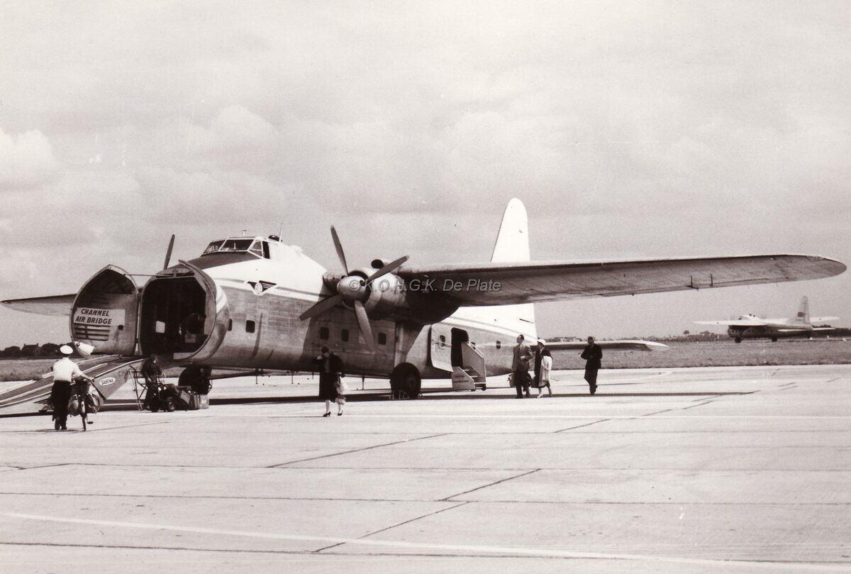 Een "dikneus" van Channel Airways met open laaddeuren op de Oostendse tarmac.Een tweede toestel van dit type start rechts op de achtergrond.