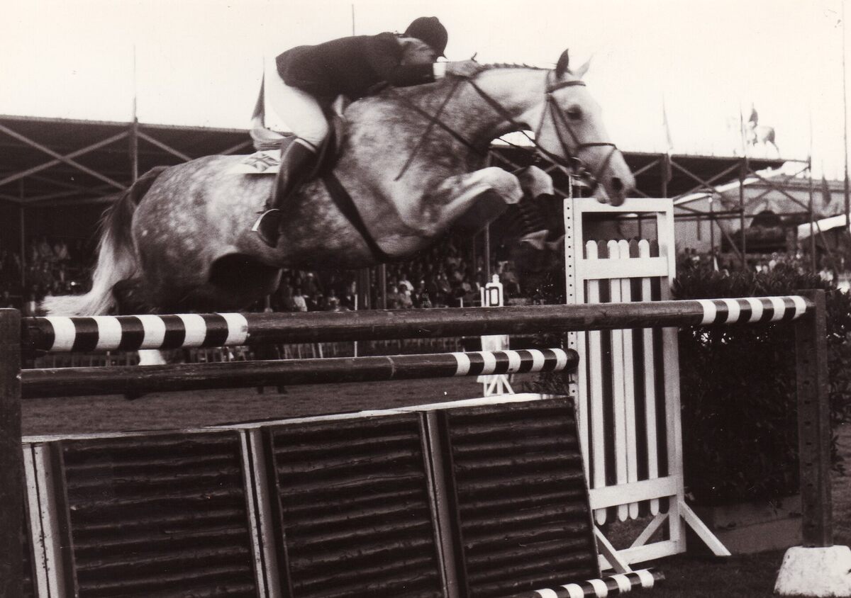 Formaat : 13 x 18 cm. - Een ruitster met haar paard Havana Royal nemen deel aan de wedstrijd in het plantsoen van de Koninklijke Gaanderijen aan de Koningin Astridlaan