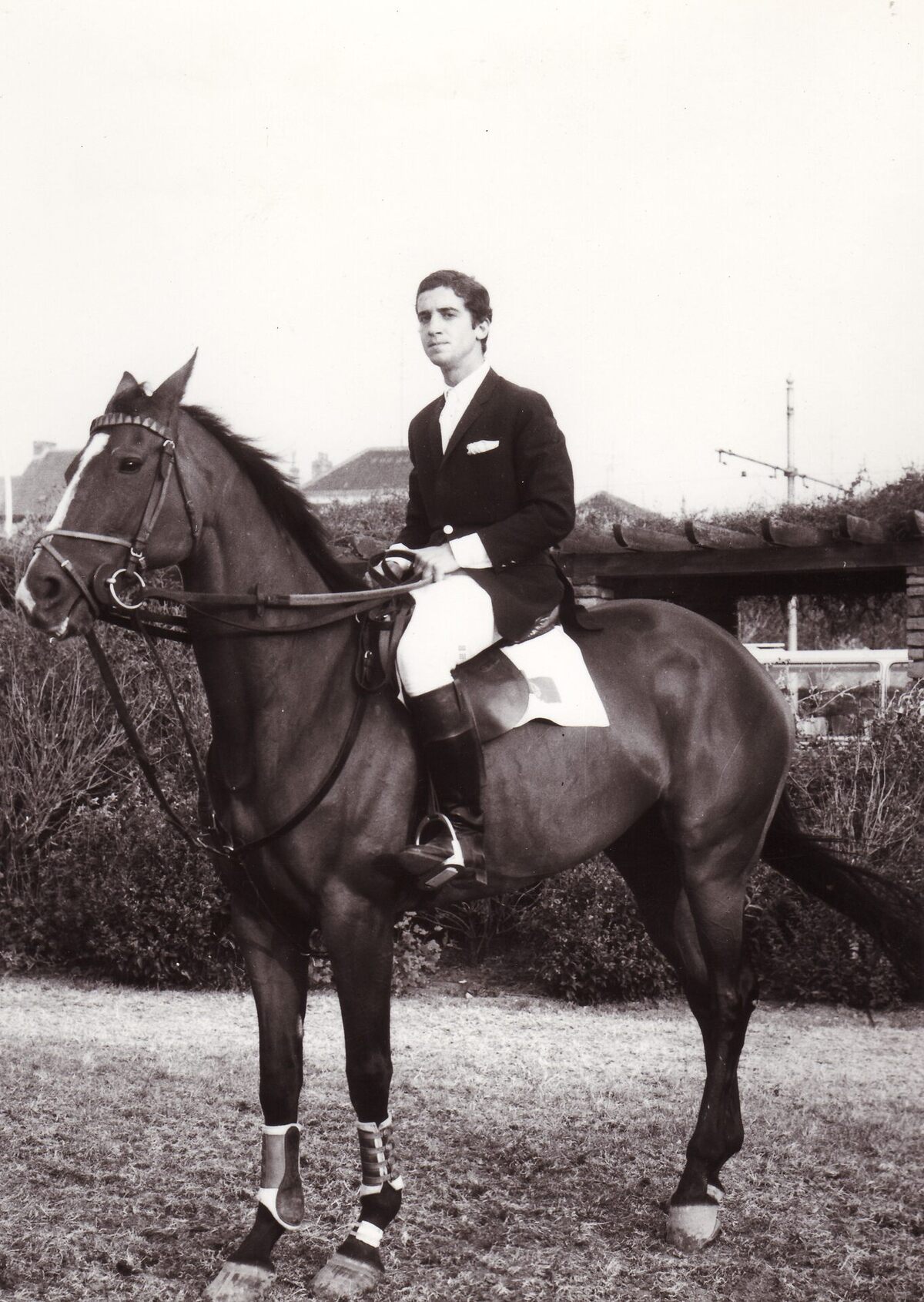 Formaat : 18 x 13 cm. - Ruiter Malta da Costa en paardnemen deel aan de jumpingwedstrijd .
