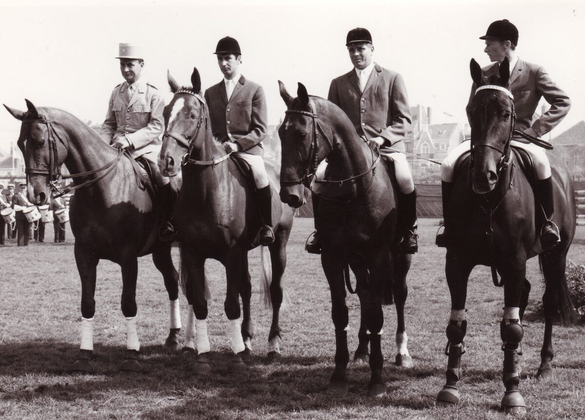 Formaat : 13 x 18 cm. - Vier deelnemers met hun paarden nemen deel aan de jumpingwedstrijd