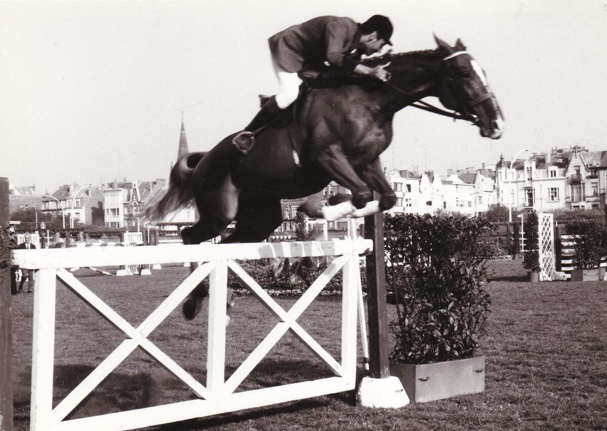 Formaat : 13 x 18 cm. - Ruiter Philip Jong en paard Prelude de Paulstra nemen nemen deel aan de jumpingwedstrijd